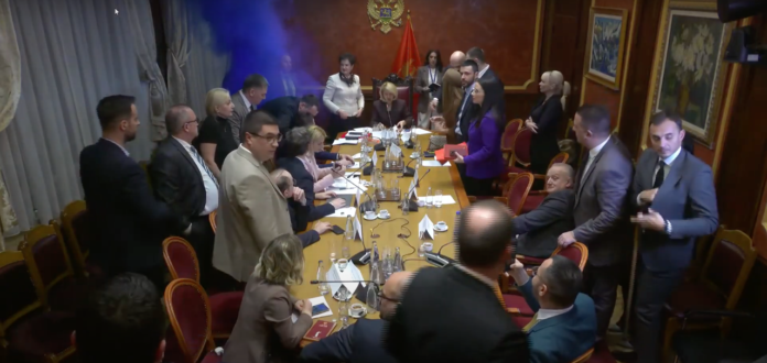 Tokom sjednice Ustavnog odbora Skupštine Crne Gore, na kojoj se raspravljalo o raspisivanju javnog konkursa za izbor sudija Ustavnog suda, došlo je do incidenta kada je bačena dimna bomba.